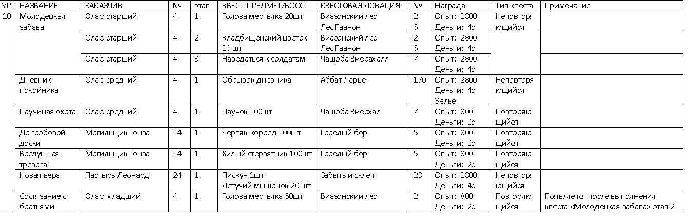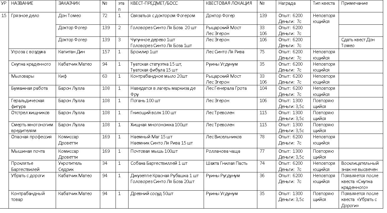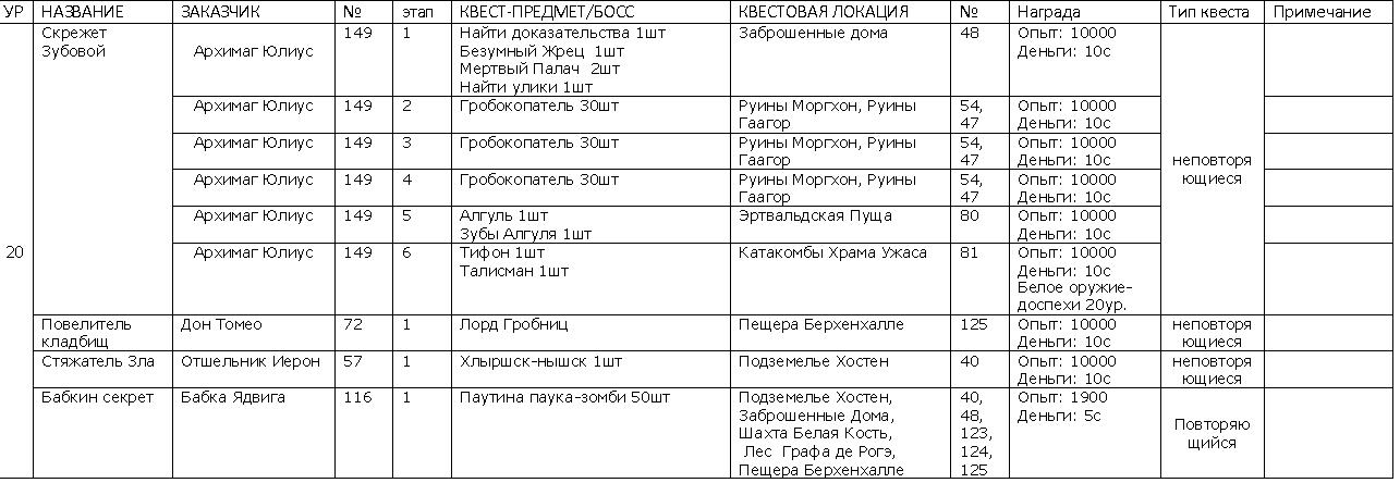 10 уровень12 уровень13 уровень14 уровеньНомера локаций в таблицах соответствуют номерам локаций в этой КАРТЕ